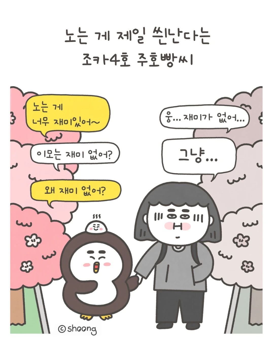 옆에서 걷던 조카4호 주호빵 씨에게 툭, 물었다.