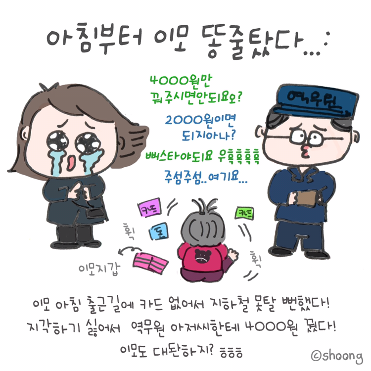 "지하철비좀 꿔주시면 안되요오? "