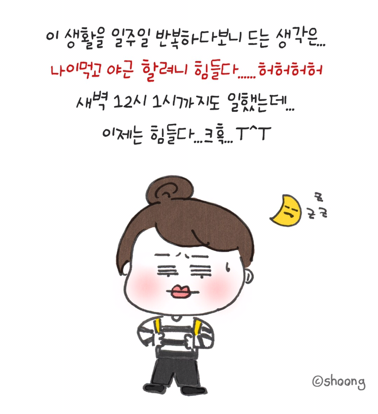 지금은... 아홉시까지 야근하는것도 힘들다 ㅋㅋㅋ