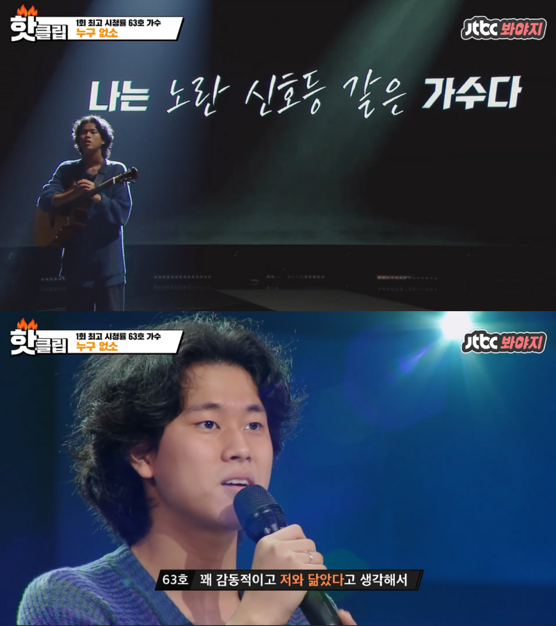 자신을 노란 신호등에 비유한 출연자는 곧이어 이렇게 말했다. 어느 날 문득 신호등을 바라봤는데, 빨간불과 파란불 사이에서 자신의 자리가 없는데도 딱 3초간 빛나고 사라지는 노란불이 눈에 띄었다고. 기회가 닿을 때마다 최선을 다해 빛을 내는 노란 불이 꽤 감동적이라고 느껴졌고, 그게 자신과 닮았다는 생각이 들어 ‘노란 신호등 같은 가수’라고 자신을 소개하고 싶다던 출연자. 서글서글한 인상에 어딘가 다듬어지지 않은 투박함이 참 좋았다. 유난히 반짝이는 눈을 가진 그는 조명이 자신에게 집중되는 순간 능숙한 손놀림으로 기타를 치기 시작했고, 심사위원이었던 이선희 씨의 입에서 환호가 터져 나왔다.