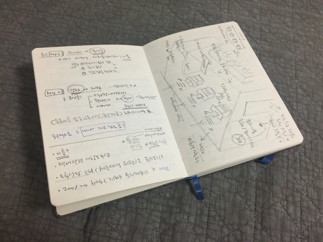 위와 같이 전체 구성을 먼저 짜두고 하나하나 내용을 채워가기 시작했는데, 예상했던 것보다 훨씬 어려운 작업이었다. 첫 단락에서 언급한 내 생각처럼 그야말로 ‘내 머릿속에도 있고, 노트 여기저기에 이것저것 끼적거려둔 것’들이었기에 대부분 추상적이기 짝이 없었다. 게다가 메모들 또한 그때그때 생각난 것들을 적어둔 것이기에 두서가 없었다. 나중에 다시 찾아서 보기도 어려웠고 찾아내서 본다 해도 세부적인 메모가 없는 탓인지 도대체 왜 그런 메모를 해둔 것인지 알 수 없는 것들도 있었다. 그것들을 정리해 글로 쓰려니 시간이 오래 걸릴 수밖에.