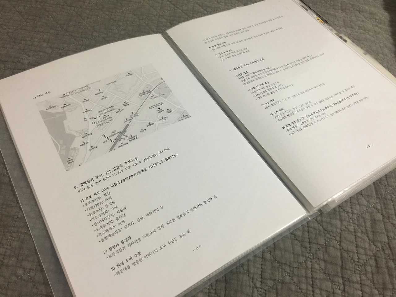 1인 사업장이고 순수하게 내 자본만으로 창업을 하는 나는 어차피 나만 볼 것이지만, 언젠가 누군가에게 보여줄 수 있다는 생각으로 사업계획서를 완성했다. 단순히 혼자 볼 문서로 끼적거리는 게 아니라 완성된 형태의 문서로 만든 것이다. 그렇게 총 15쪽짜리 사업계획서를 완성했다. 나는 그 문서를 깨끗한 종이에 출력해서 책방 파일 제일 앞에 끼워두었다. 언제든 꺼내어 볼 수 있도록.