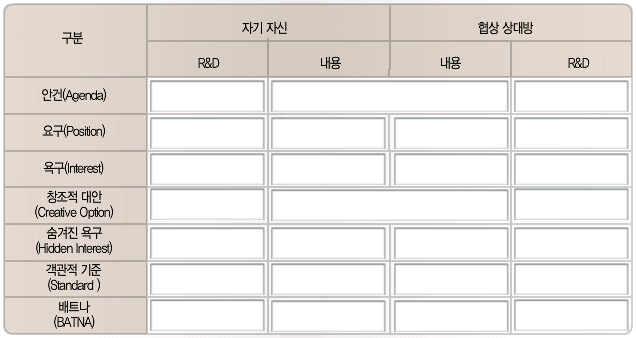 책에서는 IGM 협상스쿨(IGM books에서 이 책을 출판함)에서 만든 협상을 도와주는 도구를 소개한다.