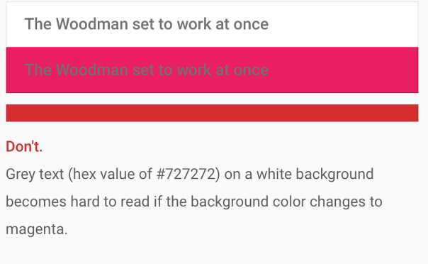 흰색 배경인 경우에는 텍스트 색이 회색이든 투명도 먹은 검은색이든 별 차이가 없지만 배경이 흰색이 아닐 경우라면 얘기가 달라진다. 아래 이미지를 보면 알 수 있다.