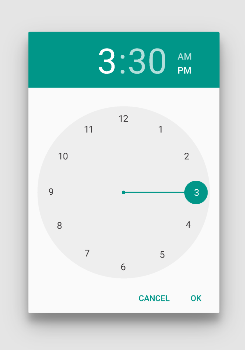 아래는 머티리얼 기본 시간 피커 인터페이스다.