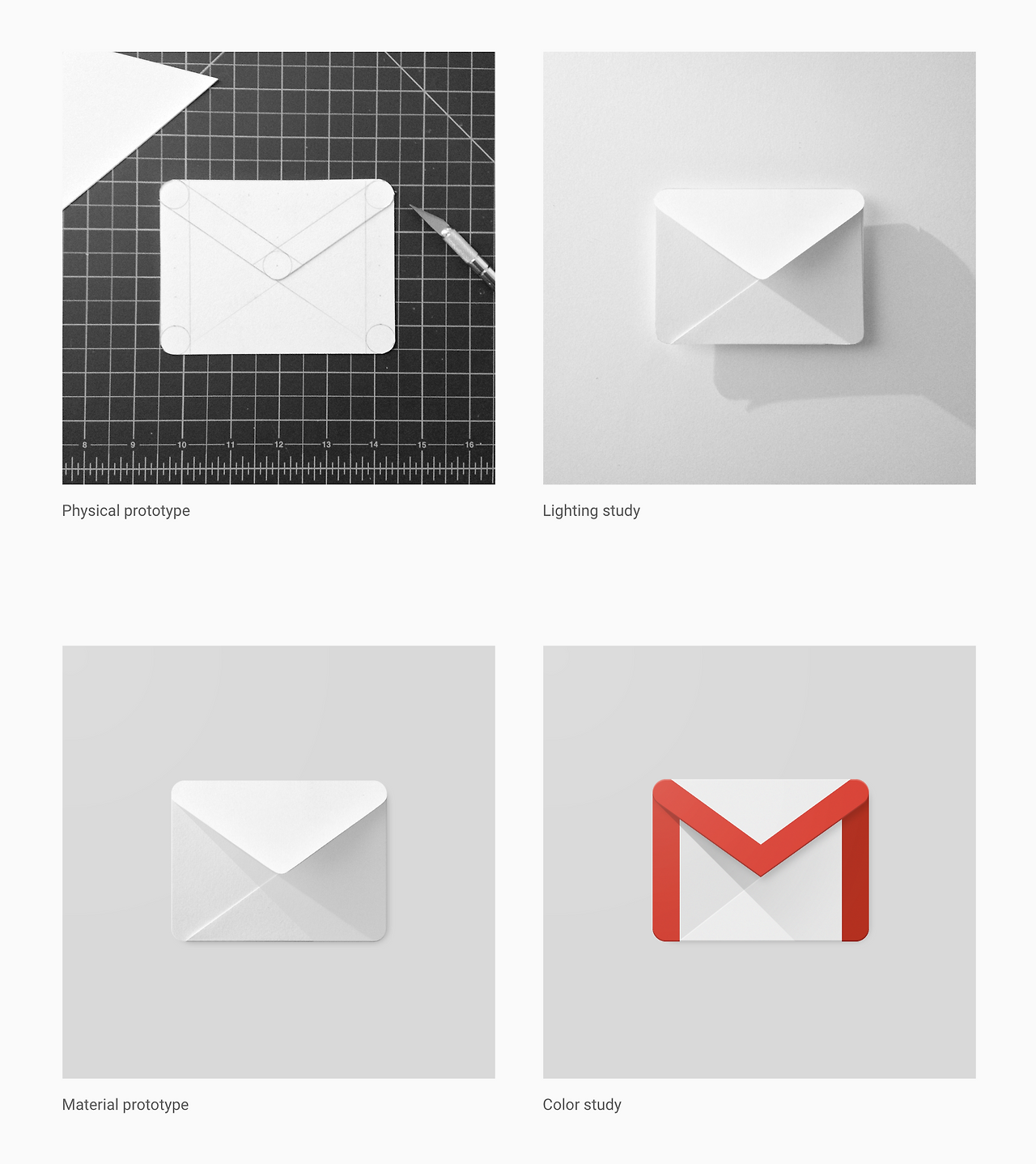 아이콘을 만들기 위해 종이를 자르고 접고 빛을 쏘인 후 그래픽으로 단순화한다.