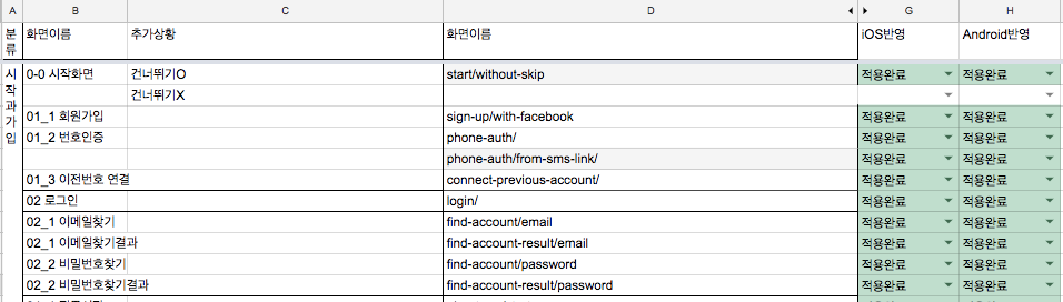 우리 팀 개발자인 대순 오빠는 내가 넘긴 문서의 대중없는 화면 이름을 보더니 이렇게 체계 없이 넣는 게 맞냐며 처음에 이렇겐 코딩을 못하겠다 했다. 고러곤 2일 공부를 하고 와서는 넣어줬다. 나쁘지 않은 방법인 것 같단다. 모든 화면이 이렇진 않고 알고 싶은게 많은 화면만 이렇게 쓰인다.
