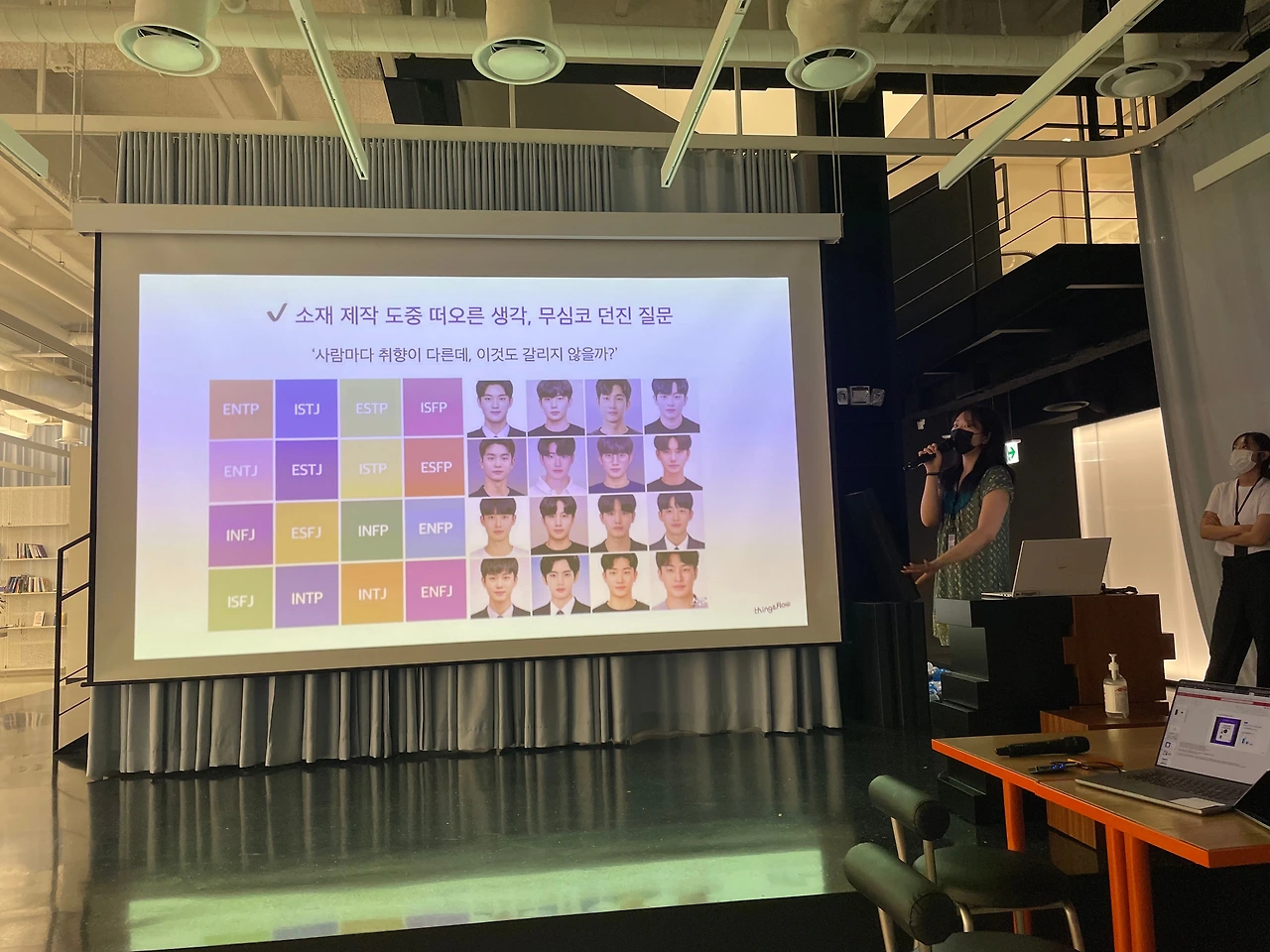 이번 제작은 콘텐츠팀이 다 같이 이태원에서 합숙하며 처음으로 공동 제작을 하기도 했는데요. 각자 본인의 MBTI는 본인이 제작했습니다. 공동 제작 업무 분담을 할 때 제일 이해도 높은 사람이 가장 잘 쓸 것이다라고 가정하여 떠오르는 지인이 있는 이해도가 높은 파트별로 나눴어요. 저도 설계한 질문을 바탕으로 인생의 모든 사람들을 떠올리며 만든 것 같아요.
