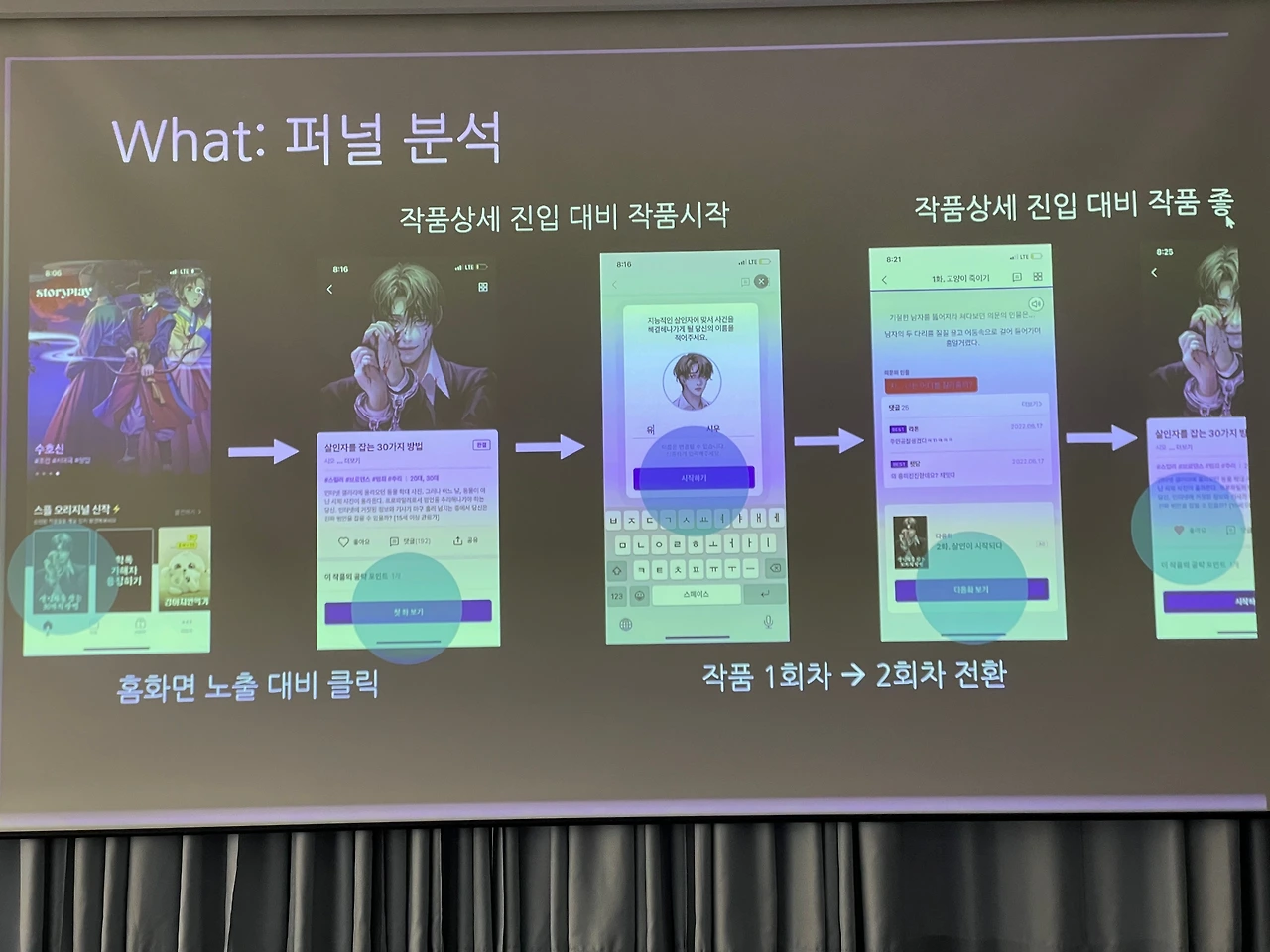 사내 세미나를 열었다. 스플팀 KR 1,000만뷰 달성의 레쓴런을 공유하는 자리였다. MBTI 소개팅은 은 6월 중순부터 1화 연재를 시작하여 완결 후 현재까지 1,200만뷰를 넘었다. 게임 앱 1위를 6일간 하였고 한달이 넘은 지금도 10위권에 머무르고 있다.