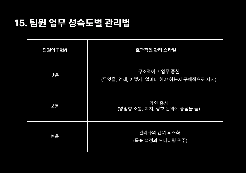 통보, 합의, 완전 위임이 결국 목표를 잘 달성을 위한 방법 설정이라는 교육이 부족하면, 리더로서의 내 에너지를 업무적 탁월함을 발휘하는 대신에 위임 수준 대한 의구심(나아가 회사 자체에 대한 불만)에 에너지를 쓰기도 한다. 이런 경우 중간 관리자가 관리하는 팀원들은 리더로부터 부정적 영향을 받으며, 될 일도 안되게 된다.