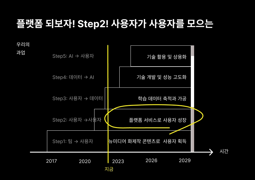 중요하게 생각하는 것은 AI 기반 봇/콘텐츠 플랫폼으로 큰 회사 만드는 것이라