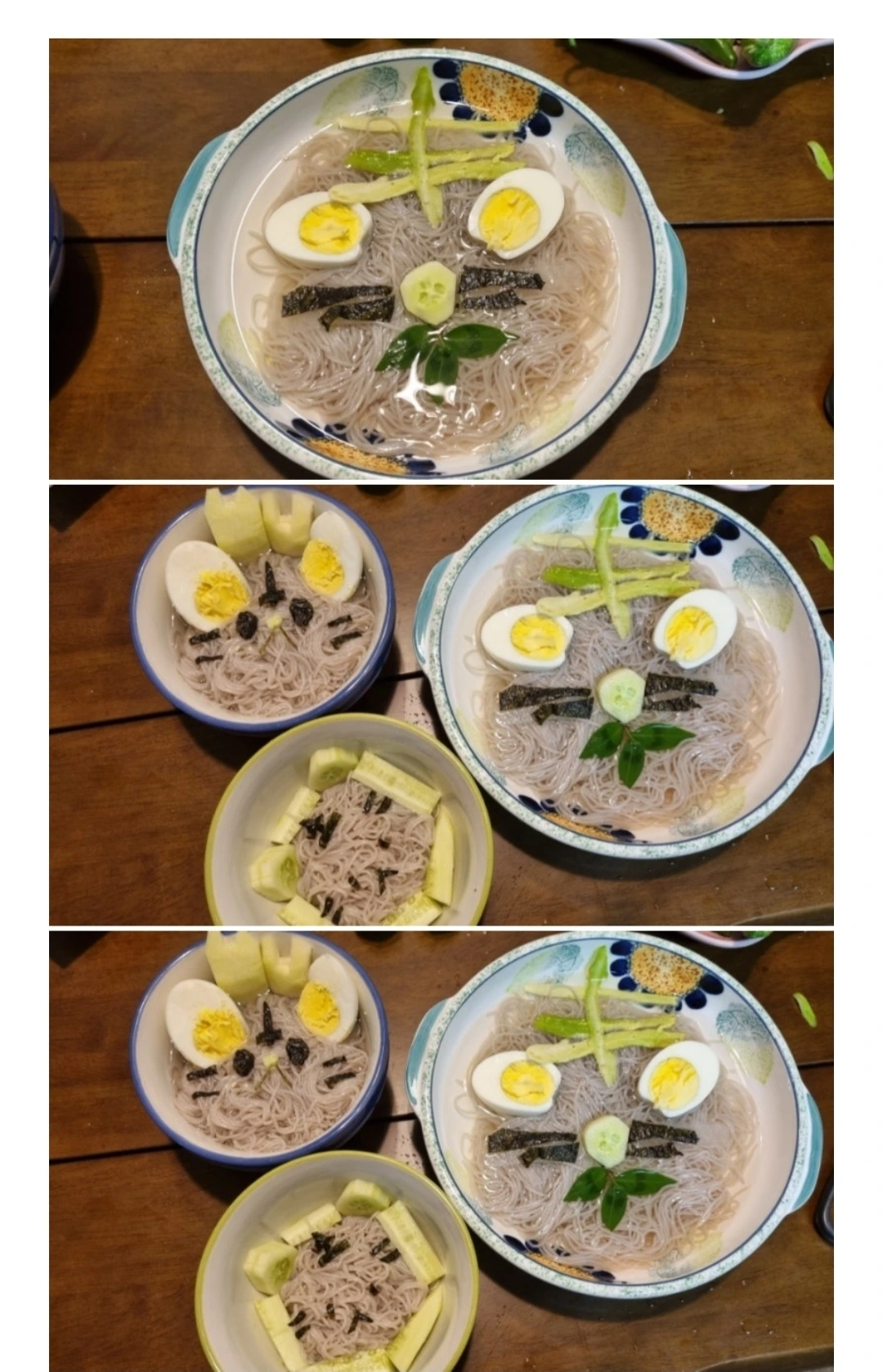 얼른 하지 않으면 우리는 다 불은 냉면을 먹을 것 같더라고요.