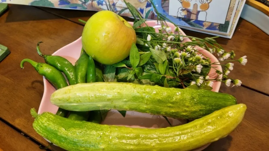 옥상에 널려있는 풀떼기들도 조금 가져옵니다.