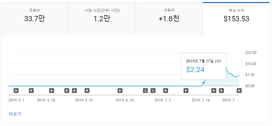 그런데 이전 올려두었던 영상들에서 알고리즘이 돌아감에 따라 조회수가 늘어났고 7월 18일, 6달러 → 7월 21일, 15달러 → 7월 25일, 20달러까지 높아졌다. 아! 이게 돈이 되는구나!를 처음 느낀 순간이었다.