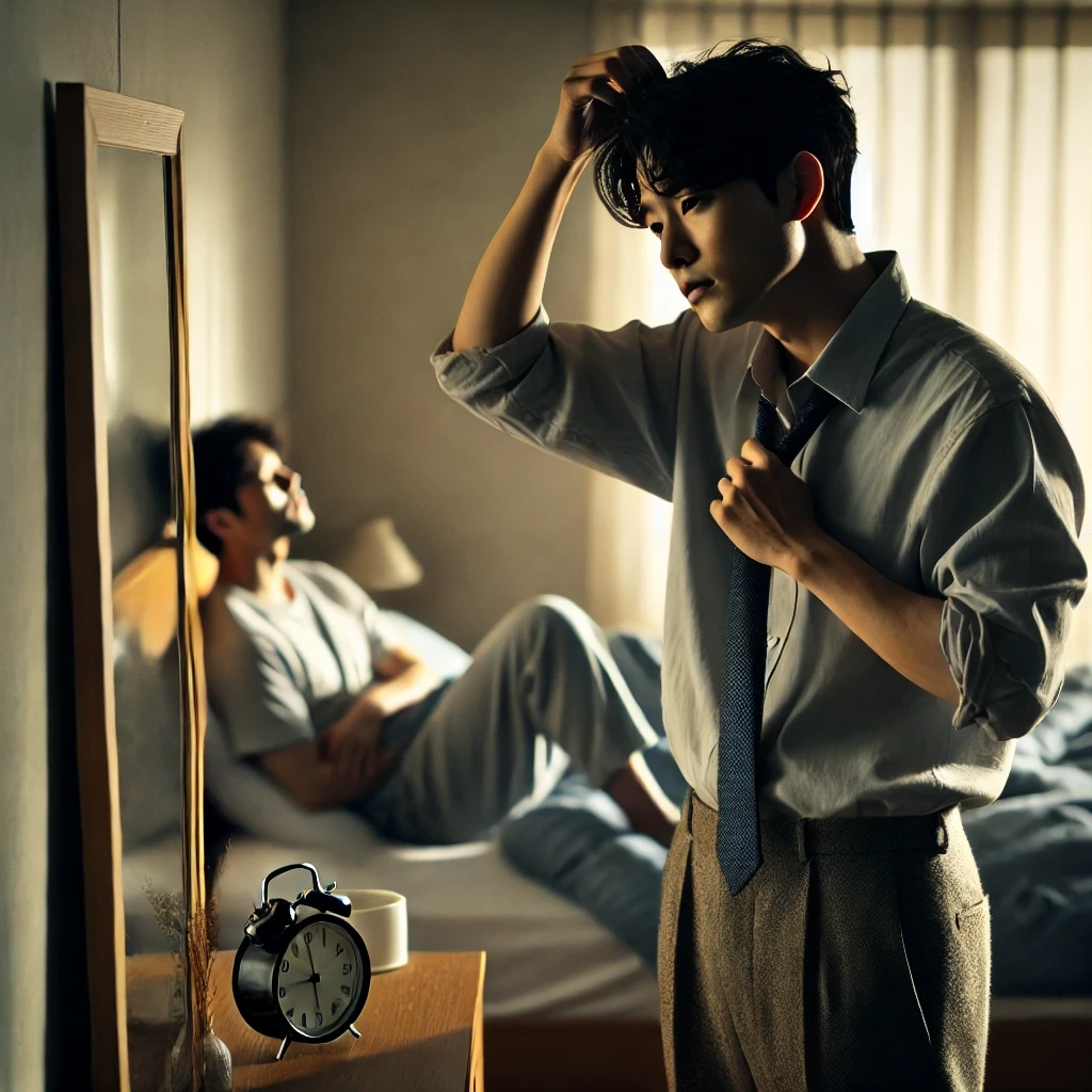 “야, 일어나서 출근해야지. 난 나갈 준비 다 했어.”