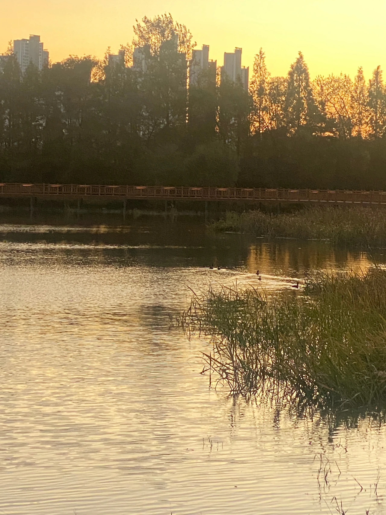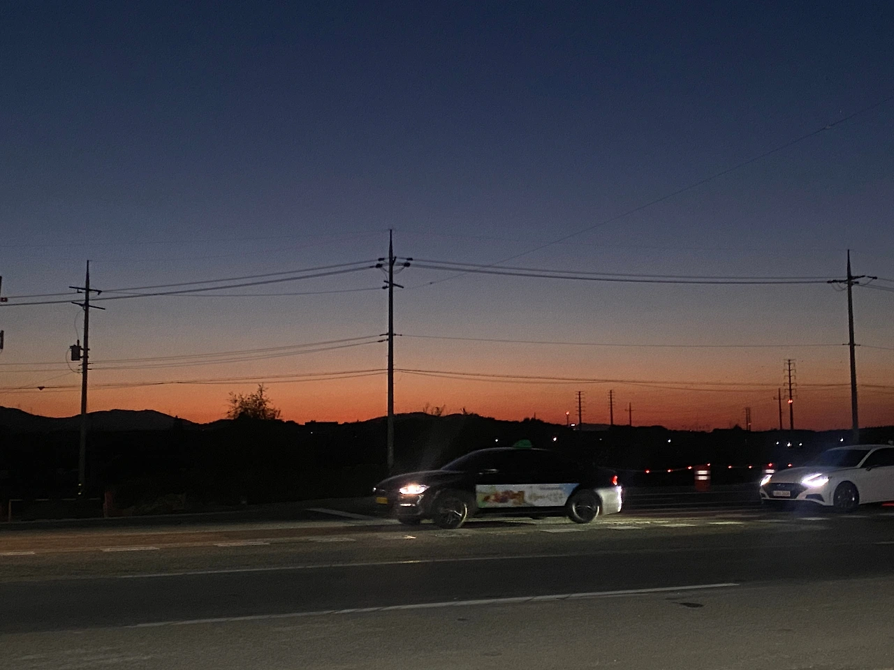 그래두 다섯시 반에 퇴근해서 돌아가는 길에 업성 저수지에서 해가 넘어가는 것을 천천히 구경했다. 애들 사료를 사러 들린 가게 앞에서 거의 저물어가는 하늘을 보았다. 내가 야근하는 동안에 다들 이렇게 예쁜 하늘을 보았던건가.