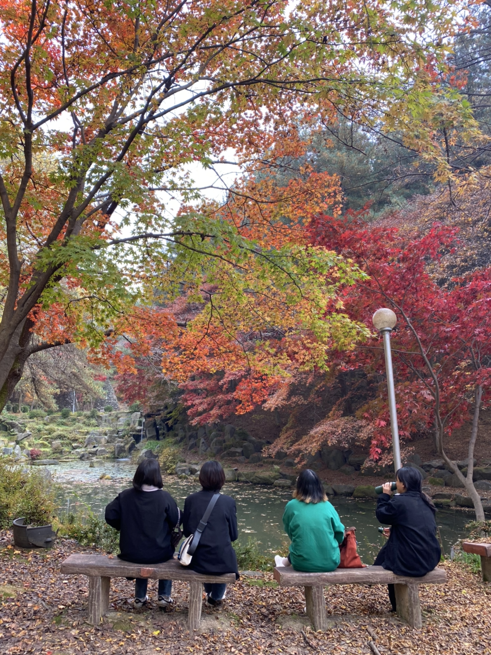 고향산장 산책길로 넘어갔는데 가을이 와글와글 있었다. 은행나무 잎이 바람에 떨어지는데 마음이 또 도곤도곤. 작년 딱 이맘때쯤에 지금처럼 친구들이랑 밥 먹고 산책을 했었는데, 비슷한 시기에 같은 일을 하는게 무지무지 좋았다. 돌탑에 별 것 없는 줄 알면서도 돌탑까지 또 걸어가고, 작년에 앉았던 의자에 앉아서 작년에 찍었던 사진과 비슷한 사진을 찍고. 이거 되게 좋은거구나. 좋아하는 장소를 매번 다른 계절에 가는 것도 좋지만, 매번 갔던 시기에 다시 가봐야겠다. 시간 뒤에 길게 줄을 선 느낌이었다.