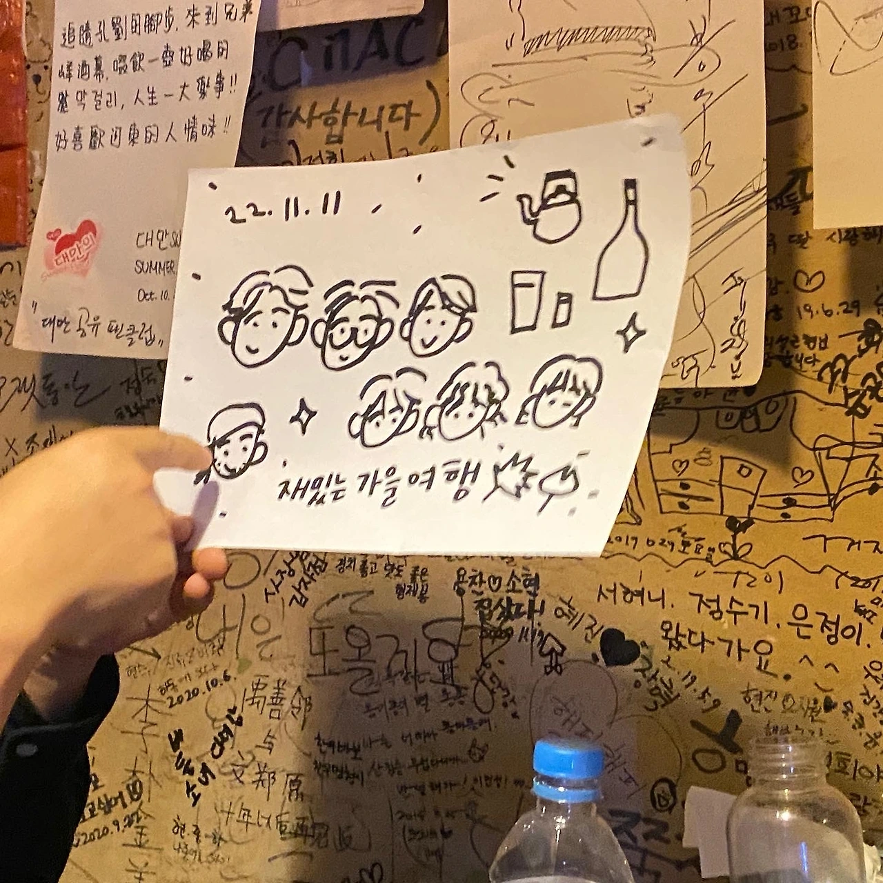 저녁엔 숙소 근처에 있는 형제봉 주막에 갔다. 동네에 있으면 일주일에 이틀 이상은 가고 싶어질 것 같은 공간. 그게 지리산 안에 있다니. 1인 1안주씩을 먹고, 달빛정감막걸리를 몇 통이고 먹고 처음 경험하는 좋은 사케를 먹고 밤길을 걸어 집으로 돌아갔다. 내일 화엄사에 갔다 오는 길에 한번 더 오자고 떼를 썼다. 그날 밤도 역시 노래를 불렀는데 기계에 노래가 없어도 노래를 부를 수 있는 친구와, 역시나 걍 음치인 신나는 친구랑, 절대음감이지만 음치이고 음색이 좋은 친구와 노래를 불렀다. 나도 매일 부르던 노래들을 불렀다.