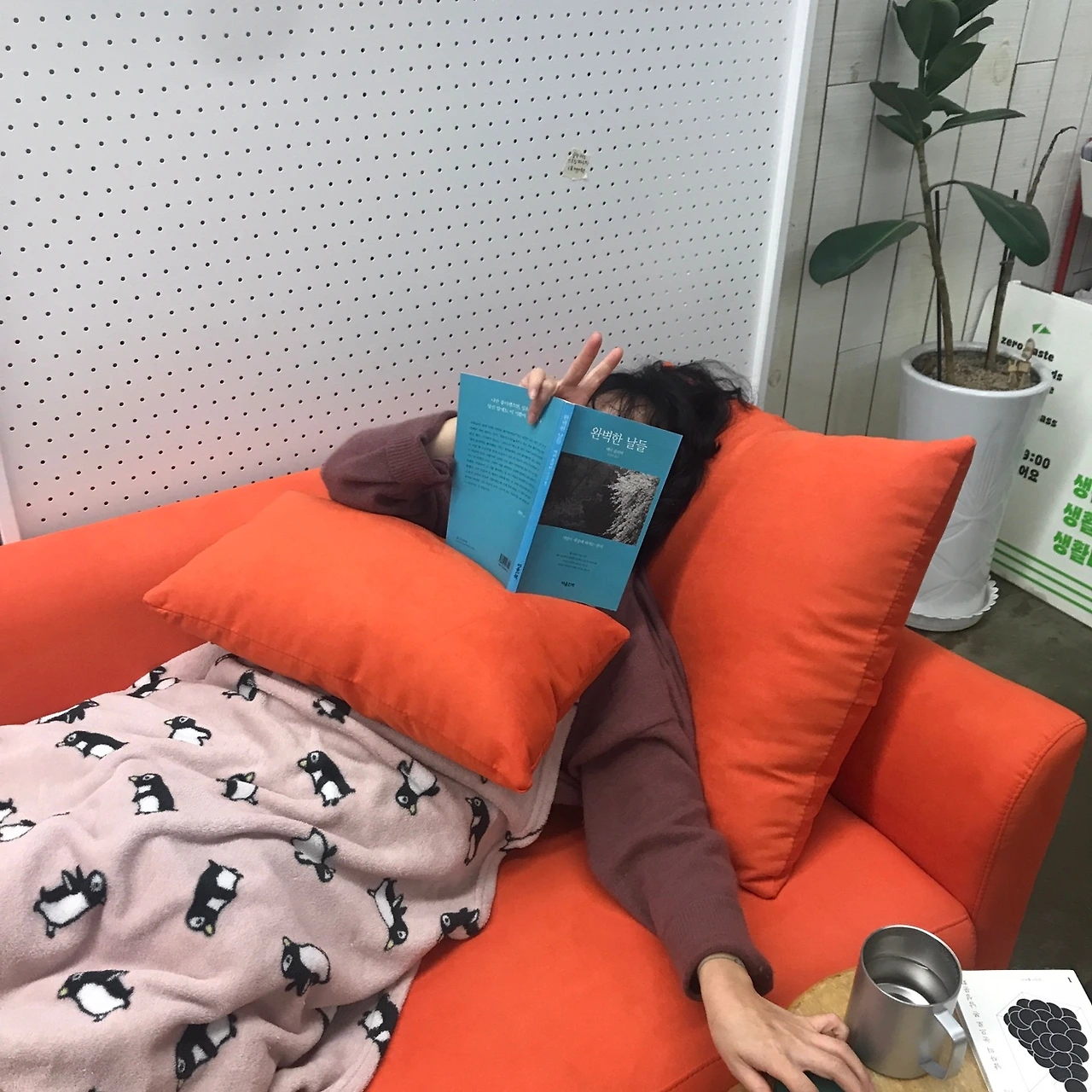 사과나무에 빛나는 주황소파가 도착했다. 두시에 오신다던 기사님은 네시 삼십칠분에 도착하셨고 우리는 차 소리가 날 때마다 문 밖을 목 빠지게 쳐다보았다. 귀여운 가방을 멘 아조씨가 몇 분만에 우웅웅웅 다리를 조립하고 누운 채로 설치완료 사진을 찍었다. 소파 하나 놨을 뿐인데 엄청 아늑한 느낌. 중간중간 잘 쉬며 일해야지. 낮잠도 자야겠다.