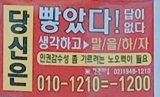 우리같이 연습합시다. 다음 번에 그런 놈이 있으면 같이 혼내주자고요. 도움이 필요하면 서로 신호를 보냅시다. 다음번에 비슷한 상황 발생 시 어떻게 대처하면 좋을지 의논을 하면 좋을 것 같습니다. 모두가 서로에게 든든한 동지가 되어주는 과정 일환으로요.