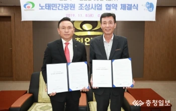 구)구본영시장은 시청 소회의실에서 2019년 11월 8일 노태·일봉 민간공원특례사업 업무협약을 체결해요.