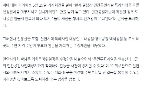 이제 주민투표를 하기 위해선 시의회의 승인이 있어야하는데요. 시의회는 이를 부결하고 일봉산뿐만 아니라 나머지 4개공원 전체에 대한 주민투표를 실시해야한다고 했어요. (이제 한 달 남았는데...)