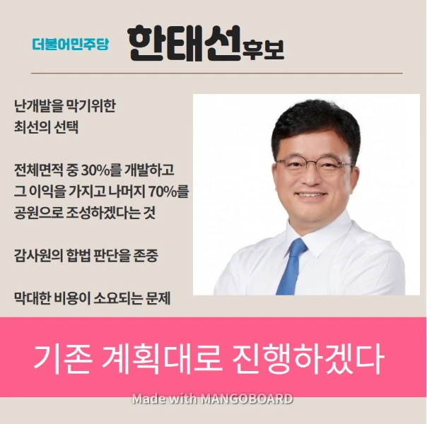 박상돈 후보는 다행스럽게도 시민들과의 약속을 지키기 위해 일봉산민간공원사업의 TF를 구성하고