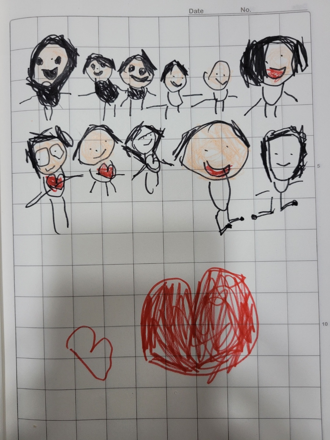 무무가 사람들을 잔뜩 그린 사진을 언니가 보내주었는데 그 중에 이모 삼촌도 있다. 삼촌은 디테일하게 안경도 그려져있다. 그리고 우리는 특별히 마음에 하트들이 있다. 이모랑 삼촌은 무무랑 엄마랑 아빠의 하트를 가져다놓은거라고 한다. 히히. 보고시픈 무무.