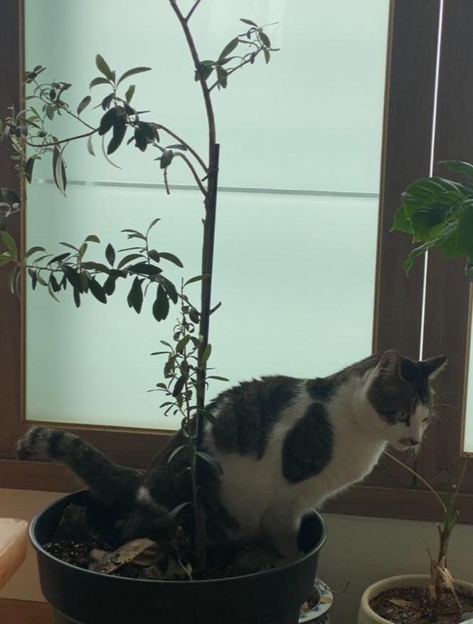 호옹이 자식, 올리브나무 화분을 매일 파놓더니 오줌싸는 현장 검거... 너무 태연하게 싸서 할 말 잃음...