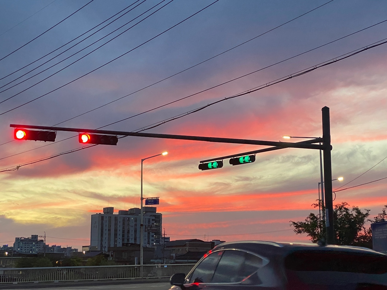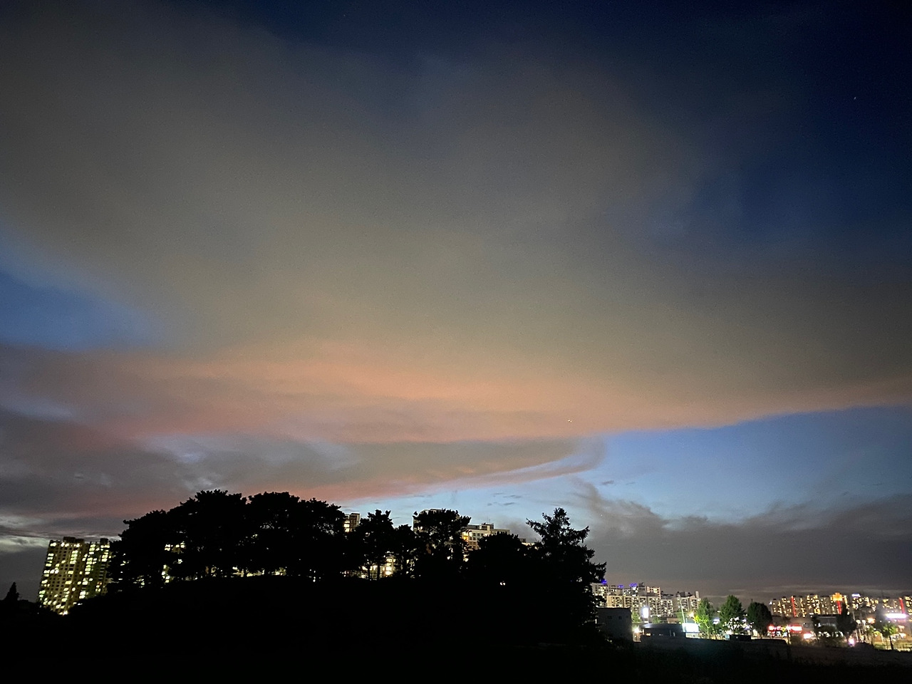 집에 돌아오는 길에 하늘이 예뻤다. 죠스바같은 하늘. 보랏빛을 담은 회색에, 한 입 물면 삐져나오는 붉은 색이 얼룩한 하늘.
