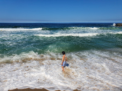 아무튼 파도에 발만 담그려고 했는데 물이 닿으니 참을 수가 없었지. 역시나 옷을 적시고야 말았다.