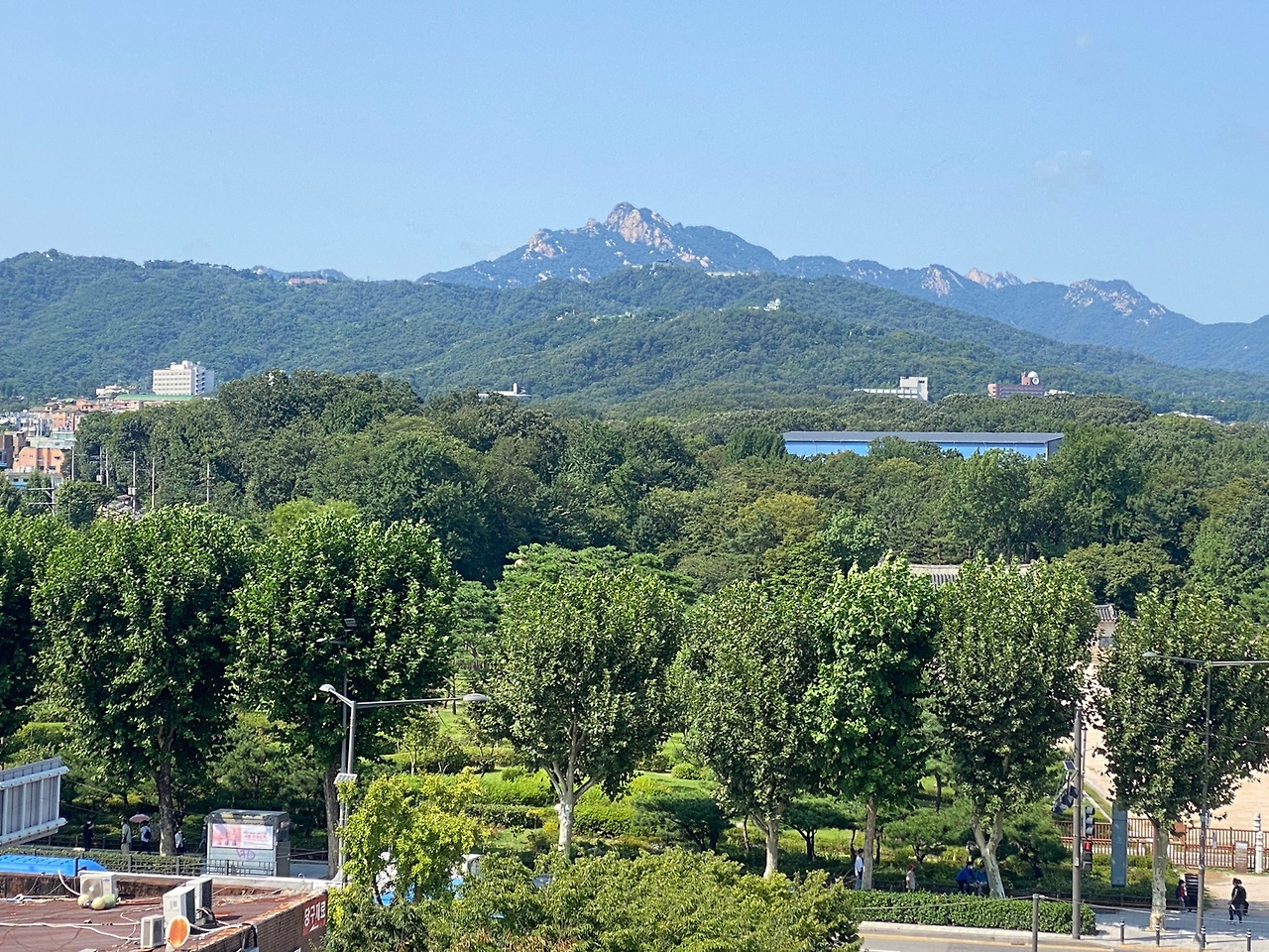세운상가 5층에서 보는 북한산과 종묘가 좋다길래 냉큼가서 구경했다. 앞에 작게 보이는 초록산은 북악산, 멀리 보이는 바위산은 북한산이라고. 언젠간 서울산 전문가들과 북한산에 오르고 싶다. 관악산도 가고 싶고 사랑하는 낙산공원도 가고싶어~~ 마침 호철은 북악산에 있다하고 서로 보이지 않지만 안뇽안뇽하며 인사를 나눴다. 마치 만난 것 같은 반가운 기분.