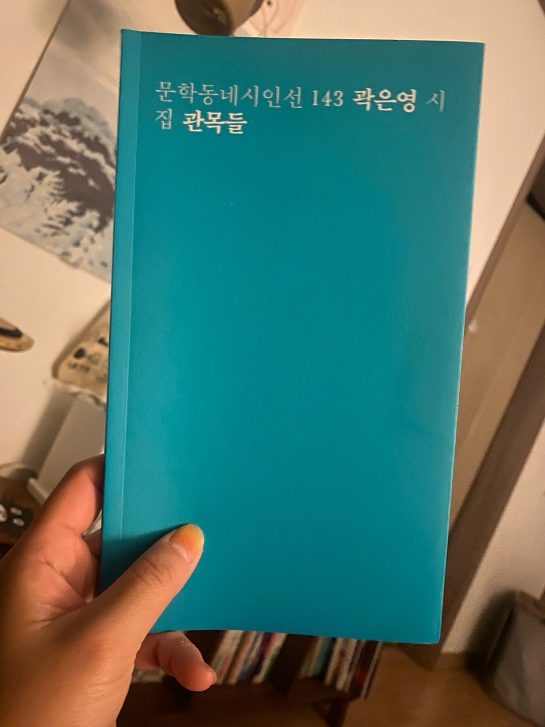 일기를 쓰면서 태풍이 지나가고를 틀어놓고, 알게 된 BGM을 듣다가, 김여명을 듣다 강아솔을 듣다 곽진언을 듣다가. 니나랑 바깥에 바람을 구경하다가. 비오는 날엔 뭔가 있는 것처럼 습습한 기분이었는데 책장에 꽂힌 좋은 시집을 우연히(?) 읽고 단숨에 환기가 되었다. 어디서 어떻게 샀는지 기억이 안나는(그래서 책방 도장 받아야해ㅠㅠ)곽은영의 시집 <관목들>.