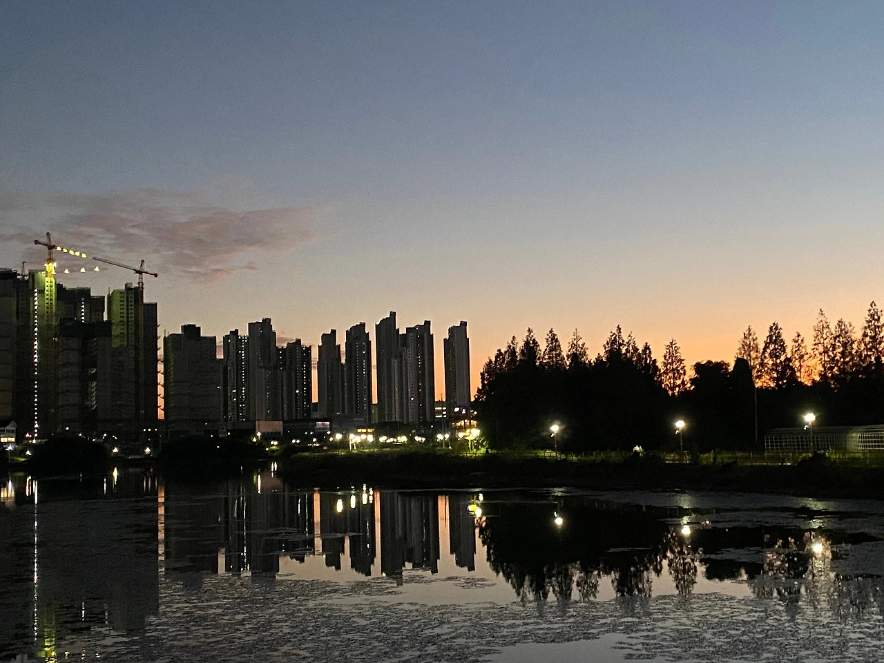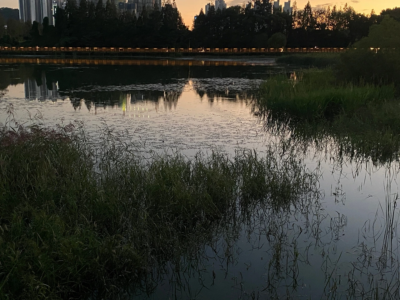 다행히 일이 좀 일찍 끝나 같이 저녁을 먹고 업성저수지 길을 산책했다. 매일 퇴근하면서 걷고 싶다고 생각한 길이었는데 오늘 딱 좋은 시간에 좋은 산책을 했다. 새가 많았고 달이 두 개씩 보이는 공원이었다.