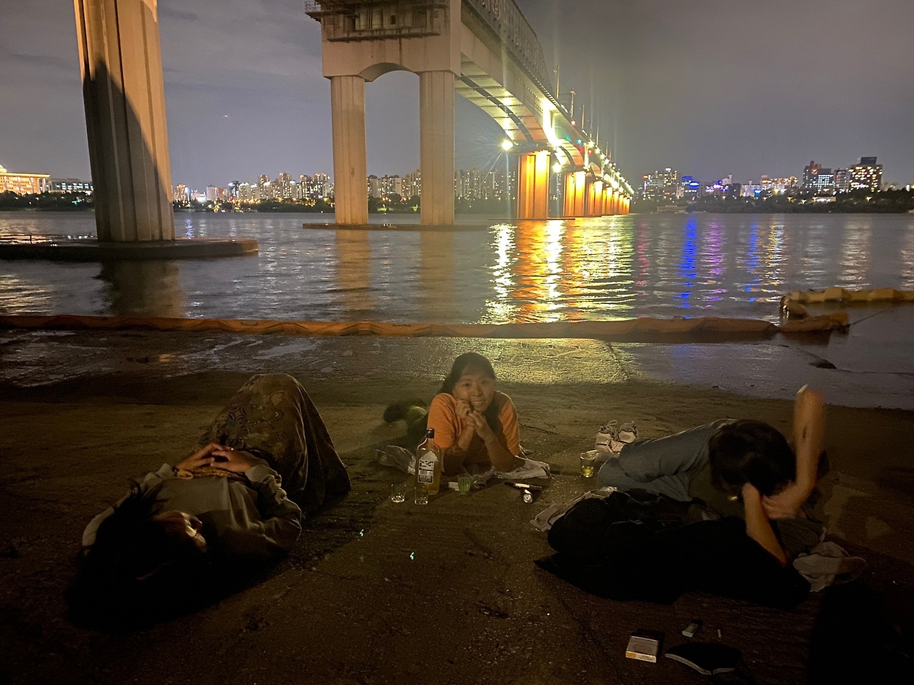 차가 막히기 전에 집에갈까, 막히는 시간을 지나서 돌아갈까 고민을 하다가 한강을 보고 가야겠다는 생각이 들어 망원지구에 다시 들렀는데 우연히 진하랑 연락이 되어 밥을 먹었다. 새로운 친구와 그토록 가보고 싶던 마이클식당도 우연히 가게 되고. 새로 만난 친구가 준비하고 있는 가게에 들러 도란도란 얘기하다 뮁도 합류해 함께 한강에 잠시 머물렀다. 오랜만에 성미산마을에도 들렸는데 친구를 만날 수 있는 골목에 사는 것이 갑자기 무지 부러워졌다.