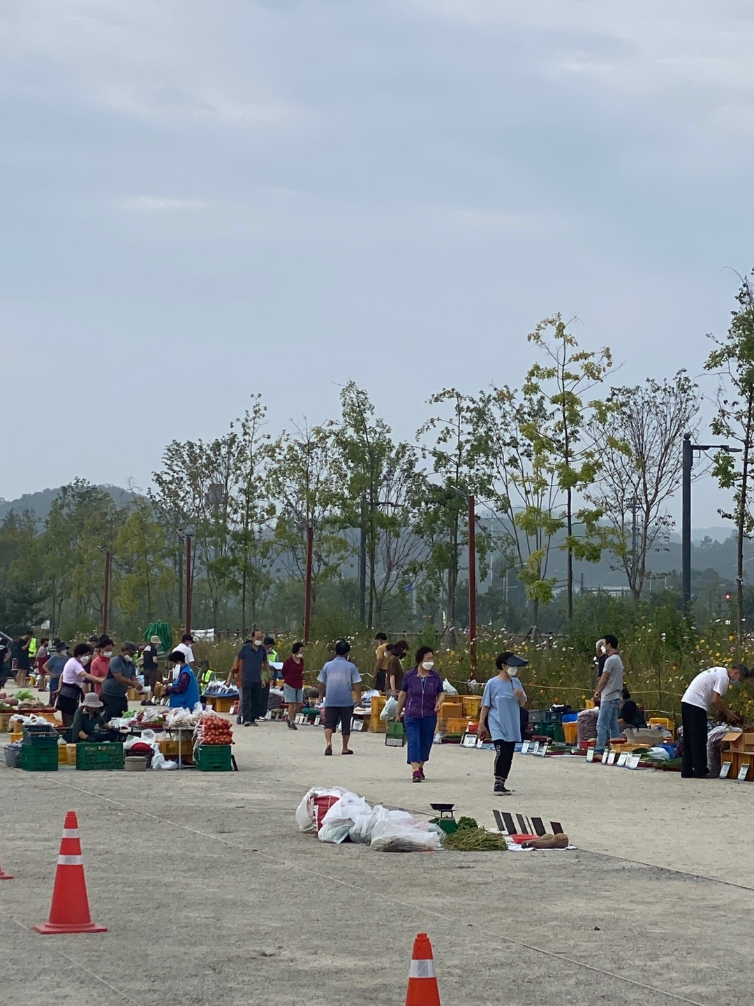 요새 왜 자꾸 아침마다 눈이 떠질까? 보통은 다시 잠들지만 요 며칠 일어나자마자 창문을 확인한다. 안개가 자욱한가? ->그렇다. 나가자. 집을 나섰는데 나오자마자 맑아졌다. 안성에는 새벽시장이라는 게 있다. 형태를 갖춘 시장이 아닌, 지역농민들이 직접 물건을 가져와 판매하는 직거래 장터. 그게 매일 새벽 4~8시 사이에 열린단다. 한번쯤 가보고싶었지만, 나의 우주엔 새벽아침은 없었으니 생각만 하고 있다가 오늘 드디어 나도 새벽시장에 가본다. 인스타에 자주보이는 토마토비빔밥을 해볼 요량으로, 기대하며 아침 산책을 나섰다.