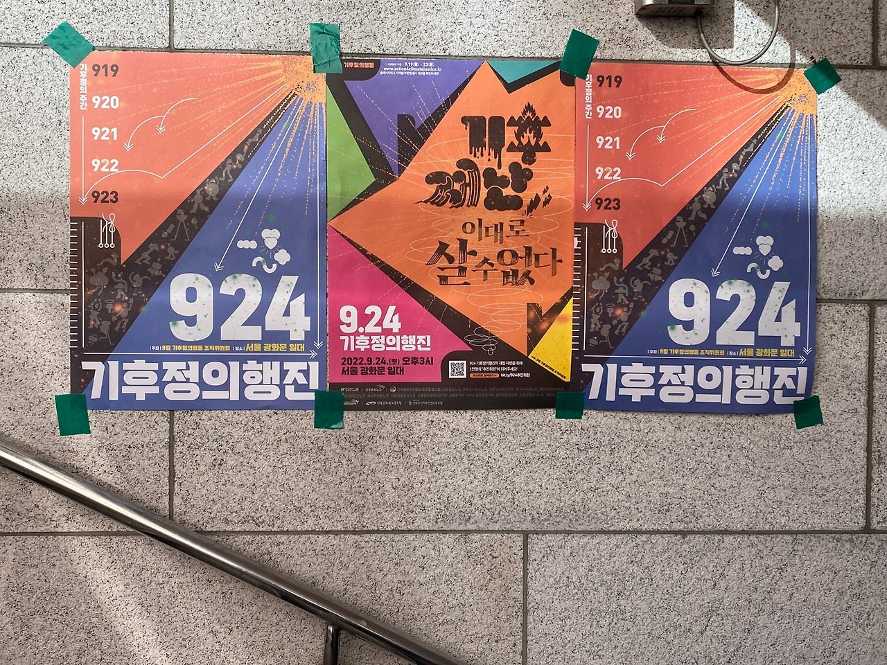 시청역으로 가는 길에 여기저기 붙어있는 기후정의행진 포스터! 사과나무가 만든 포스터 중에 가장 널리 퍼진 작업물인 것 같은데 이 얘기는 사장님이 나중에 글로 써주기로 했다. 아쉬워서, 그래서 더 재밌는 에피소드.