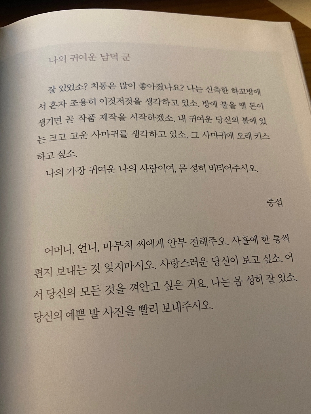 가는 길엔 시내가 선물해준 이중섭 책을 읽었다. 이중섭이 혼자 부산에 가난하게 살면서 아내를, 가족과 함께 보낸 시간들을 그리워하며 주고 받은 편지들을 모은 책. 그 시간들을 생각하면 아찔할 정도로 슬퍼진다. 그리고 편지에 뚝뚝 묻어나온 사랑. 사랑. 사랑을 아낄 줄 아는 사람이 되고 싶다. 편지만큼 좋은 것은 책 뒷면에 구상이라는 이중섭의 친구가 쓴 글이다. 이중섭이 가난 때문에 영양실조로 죽은 것이라 알고 있었는데, 사실은 예술과 생활 안의 고뇌 때문에 식음을 거부하게 되고 그것을 이유로 죽게 되었다는 것. 이중섭은 그 때도 꽤 인정받고 있는 화가였고 후원을 받을 기회도 몇 번이고 있었는데, 거절하느라 애를 먹었다고. 일본에 가서 한국에 대한 그림을 그려야겠다는 계획을 세우곤, 그것이 좌절되자 중섭은 자신이 일본에 가고 싶은 이유가 사실은 아내와 아이들을 보러가고 싶어서였다고, 세상과 자기 자신을 속이고 있었다고 고백하는 대목. 그게 뭐가 큰일인지 몰라도 그 좌절로 병을 얻게 되어 죽어간 사람. 그 천진함에 화가나기도 하고, 그렇지만 너무 아름다운 사람이었다는 것. 책을 보니 많이많이 더 궁금해졌다.