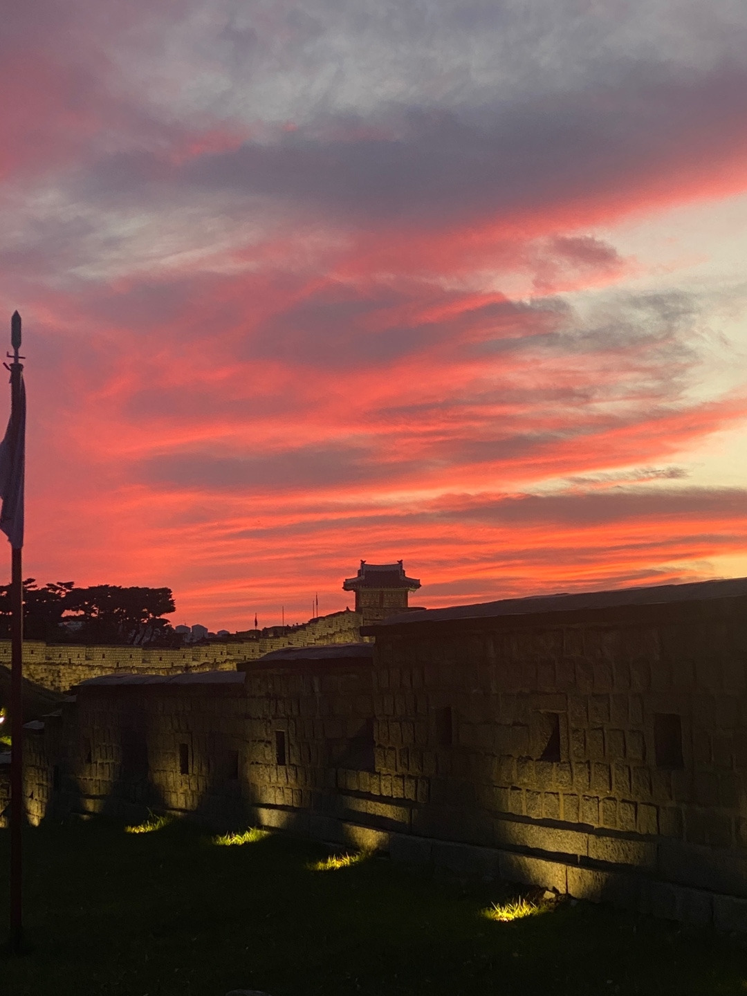 그러나 끝나지 않은 하루. 가혜가 수원 화성에서 이랑이 오는 무료 공연을 발견했고(시내인가?) 표를 예약해주어 시내랑 셋이 행궁동으로. 타이밍 좋게 맛있는 식사를 하고, 해질무렵 화성성곽을 따라 공연장까지 갔다. 사람이 꽤 많았지만 견뎌지는 아름다움. 노을은 거의 90점이었는데 거기에 화성이 더해져 290점...... 아 정조대왕사랑해요.....ㅠㅠㅠㅠ그러나 절정은, 긴 성곽을 따라 걷는 것이 지칠무렵 도착한 공연장(동장대)가 말도 안되게 아름다운 것. 여기서 공연을 본다는 게 믿기지가 않을 정도로 눈물이 줄줄..... 담에 기대어서 노래를 들었다. 이랑의 노래를 평소 많이 듣지 않아 낯선 노래들이 많았지만, 마지막에 환란의 세대를 듣게 되어 너무 좋았다!