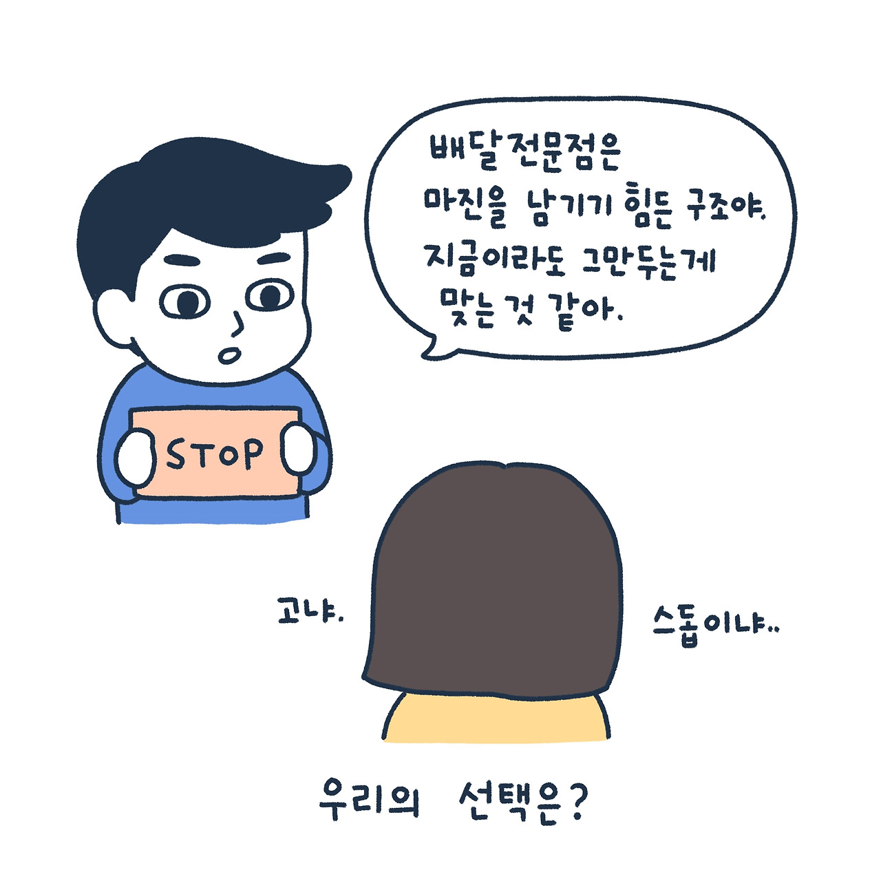 남편은 배달 식당은 이윤을 남기기 힘든 구조이며 지금이라도 접는 게 낫다고 했다.