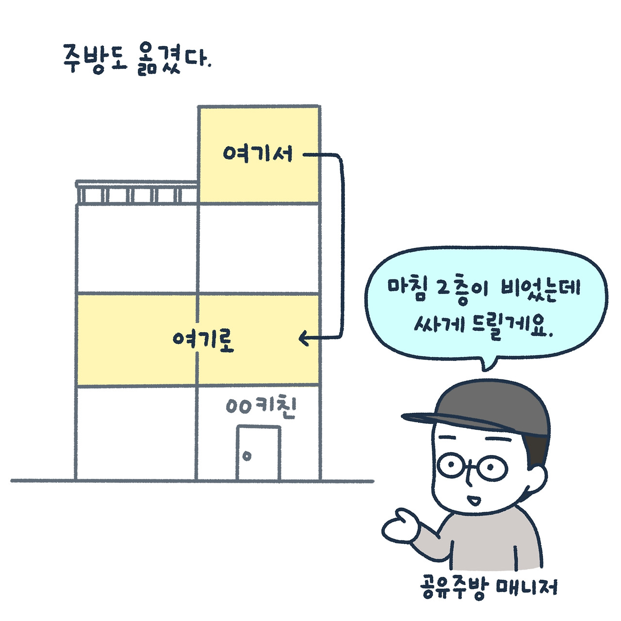 공유 주방 대표님이 건물 계약기간이 6개월 남았다며 신규 입주자를 구하기 어려울듯하다고,