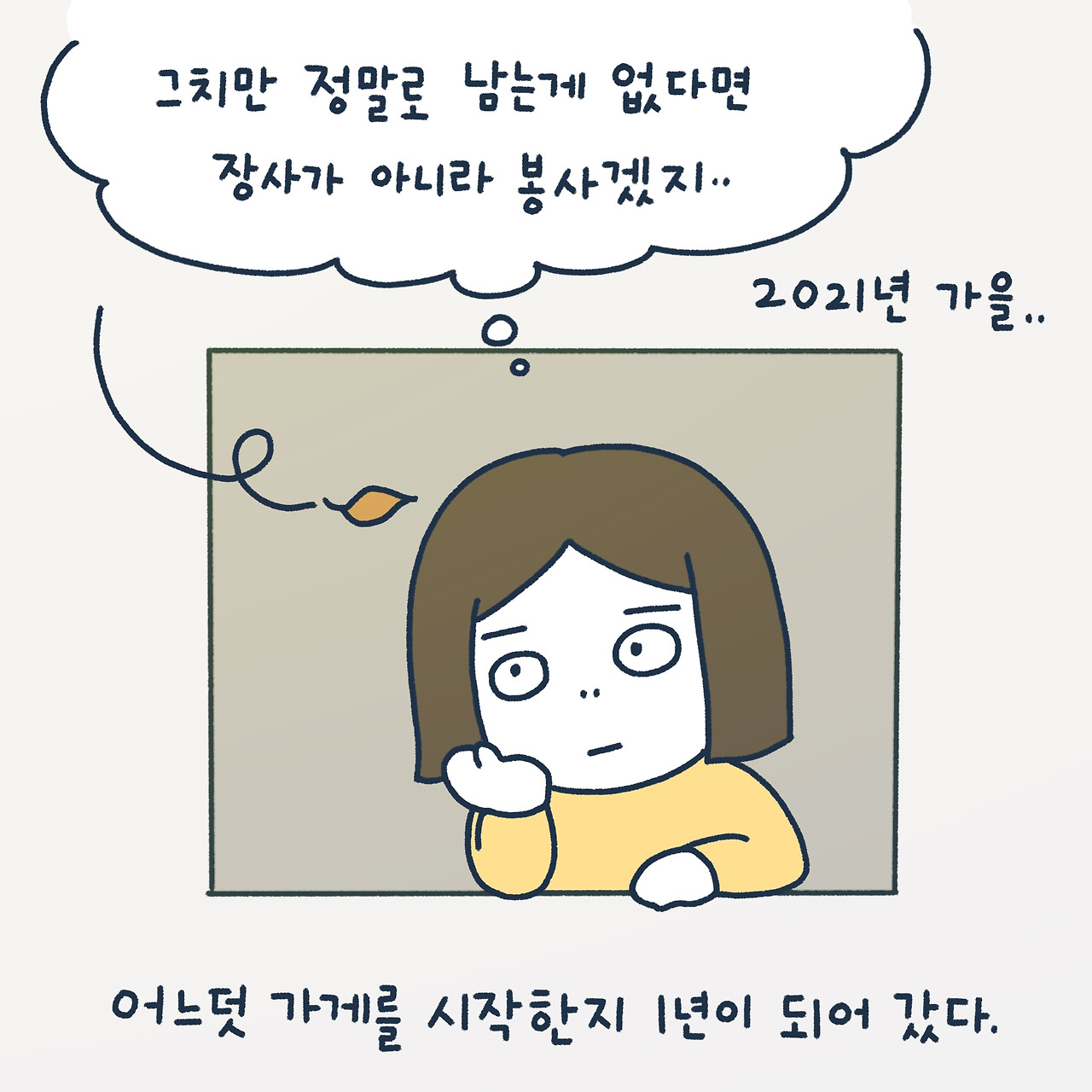 그저 잘 될 것만 같고 안돼도 그렇게 큰 손해는 아닐 것이라 생각하고 가벼운 마음으로 가게를 시작했는데