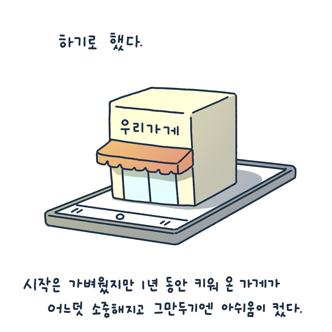 이제 막 자리 잡기 시작한 가게가 아쉬워서, 핸드폰 안에서만 보이는 이 작은 가게가 어느덧 소중해져서.