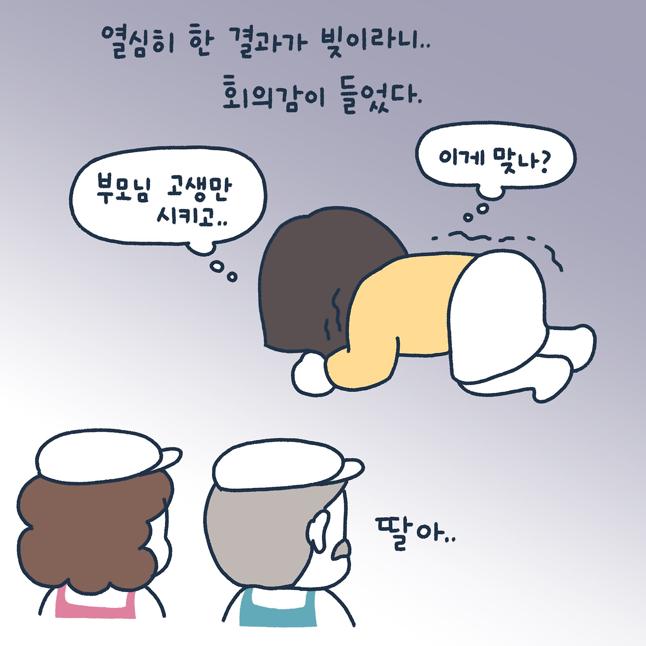 부모님은 새벽같이 나와 준비하시고 가게를 마감하고 집에 돌아오면 피곤함에 파김치가 되곤 했다.