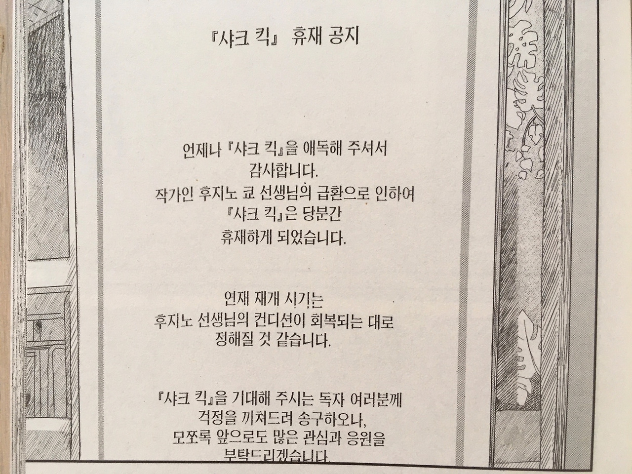 그리고, 작중 작 『샤크 킥』의 작가 ‘후지노 쿄’ 선생님의 ‘쾌유’를 바래본다.