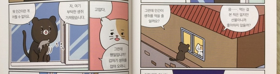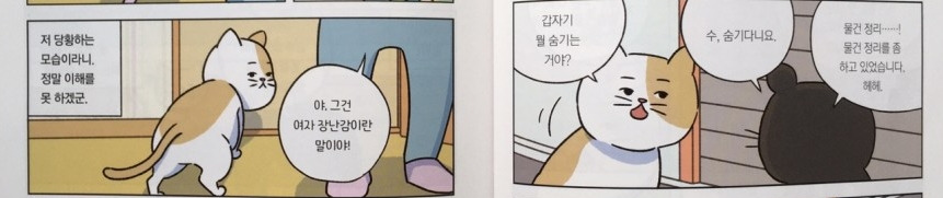 위와 같은 이야기는 고양이의 생태에 기반하여 웃음과 생각할 거리를 함께 던져 준다.