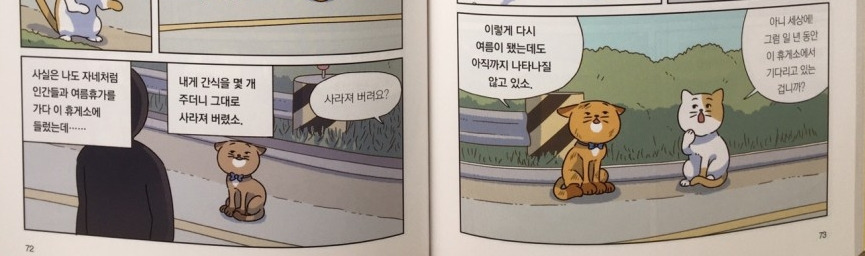 고속도로 휴게소에서 자신이 보호하는 인간을 잃어버리고 나서 일 년째 그 가족들을 찾고 있는 고양이를 만난 이야기라든지 말이다.
