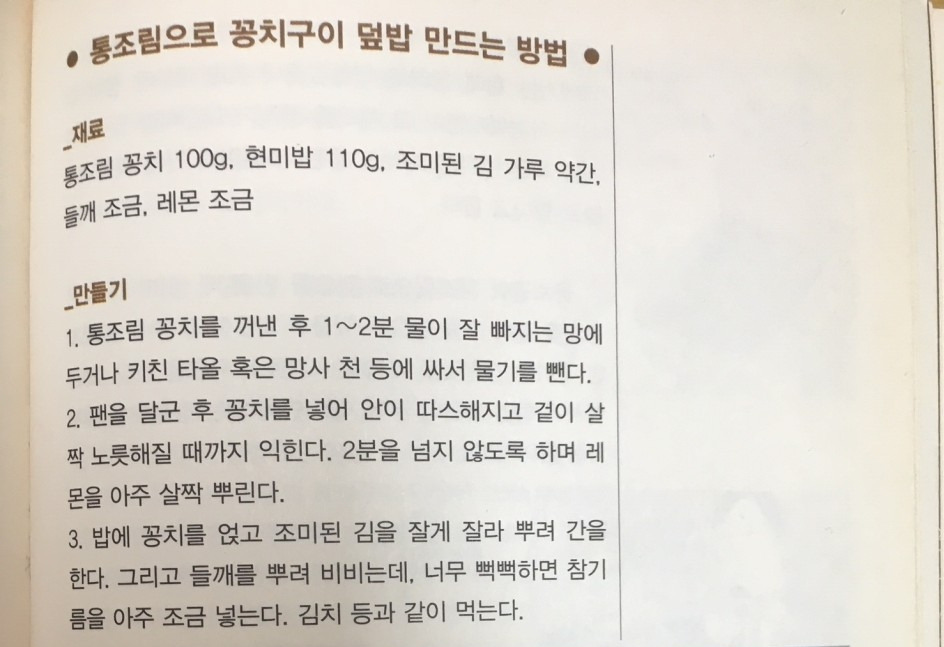 마스터가 만들어주는 음식을 먹고 싶지만 그럴 수가 없기에 책에 실린 레시피를 찍어서 폰에 보관한다. 책에 4개가 실려있는데, 한 개만 사진 빼고 가져와 본다. 궁금하시면 가까운 도서관 등을 참고하시길.