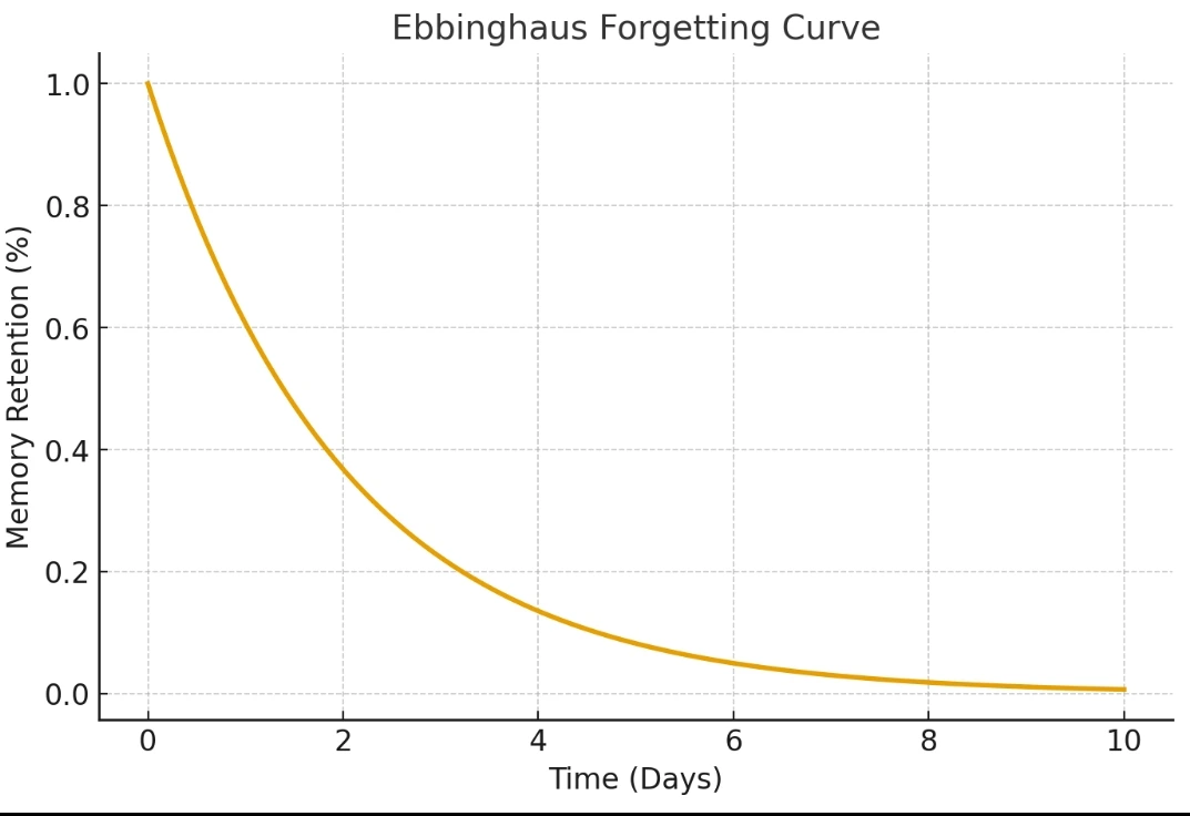 심리학자 에빙하우스(Hermann Ebbinghaus)는 인간의 기억이 시간에 따라 급속히 감소한다는 ‘망각곡선’을 제시했다.