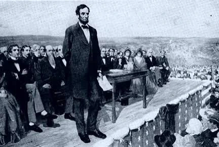 그리고 또 하나, 역사상 가장 유명한 삼단 구조의 문장은 아브라함 링컨의 게티즈버그 연설에 있다.